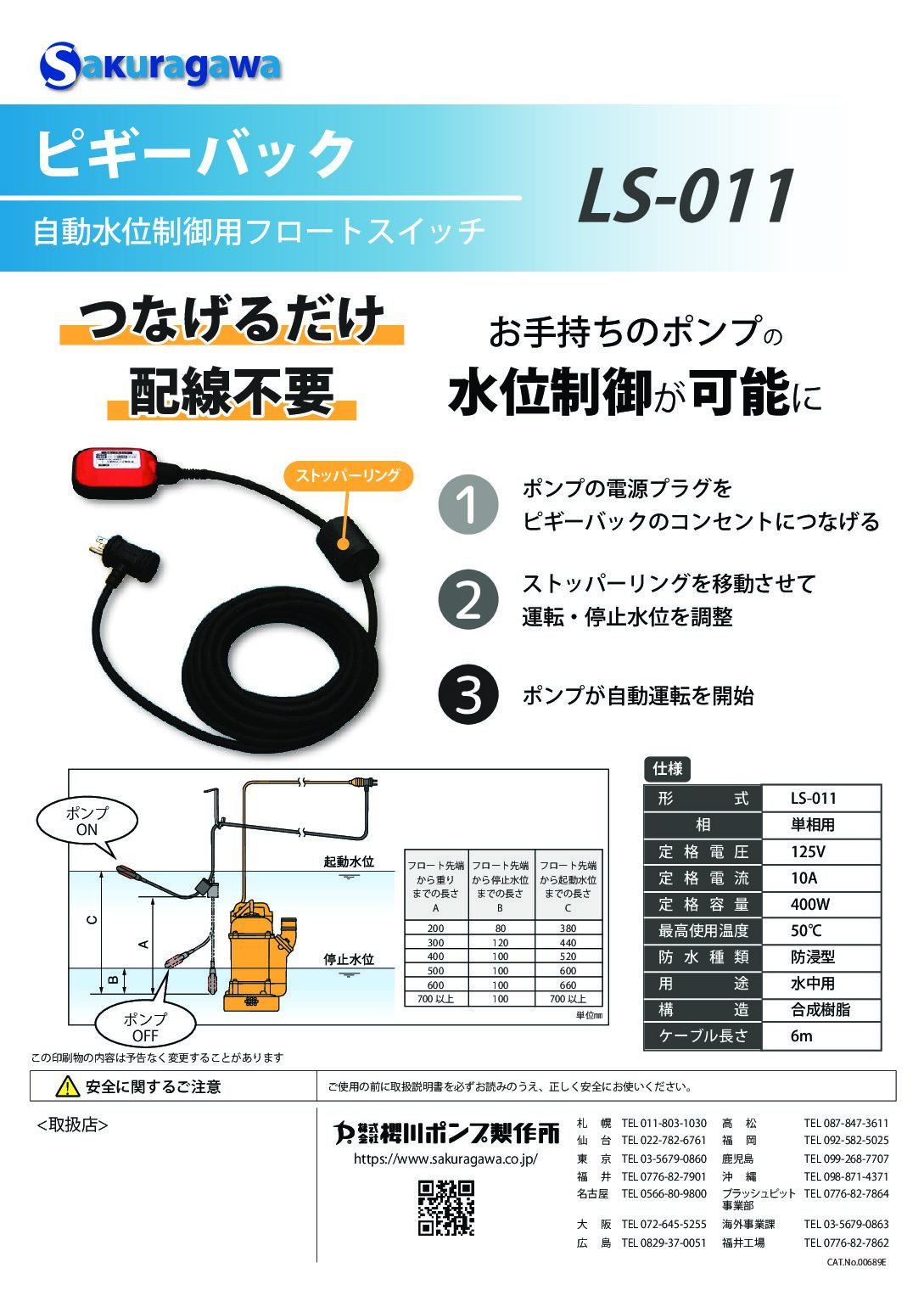 2.ストッパーリングを移動させて運転・停止水位を調整