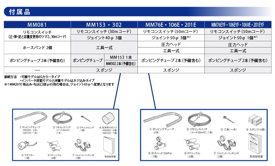 トップランナー制度に準拠したプレミアム効率モータ(IE3)を搭載しています。(MM76E、106E、201E、CM2000SE)