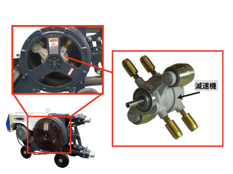 減速機をドラムに内蔵しているため軽量でコンパクトです。