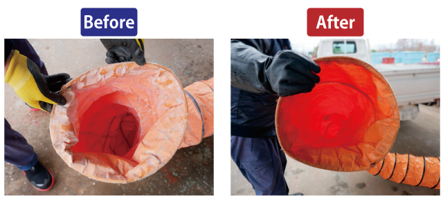 風管の内側と外側にノズルがついているため、両側からしっかりと洗えます。