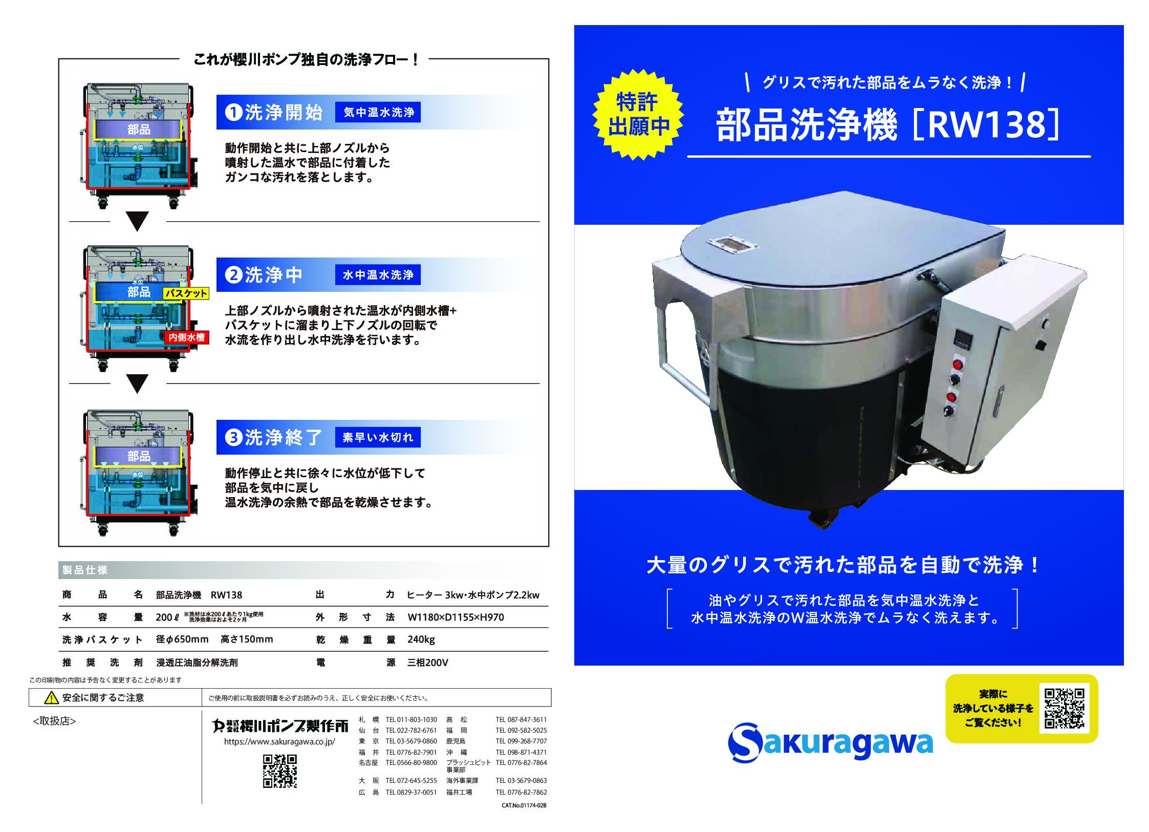 水中ポンプでつくりだした水圧と水量で部品に付着した頑固な汚れを落とします。