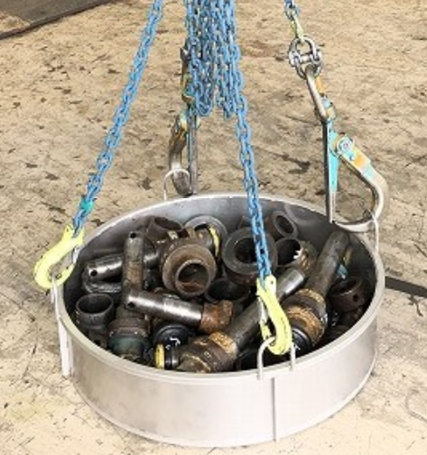 洗浄かごは4箇所の吊りフックを使用することで安定感のある吊り上げが可能です。