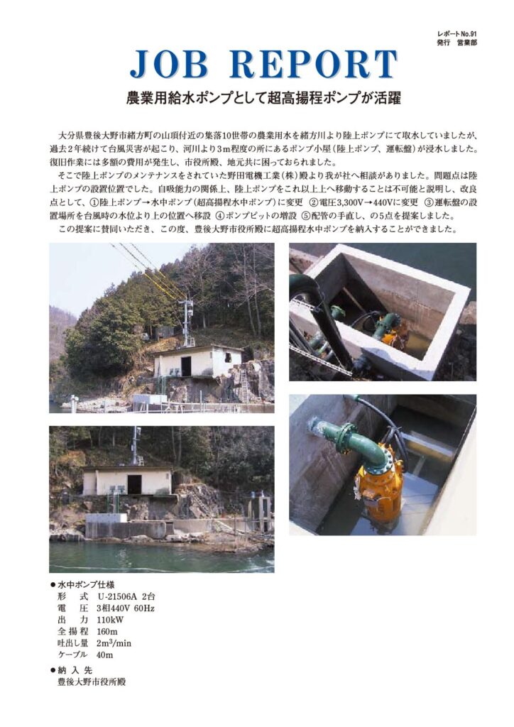 農業用給水ポンプとして 超高揚程ポンプが活躍